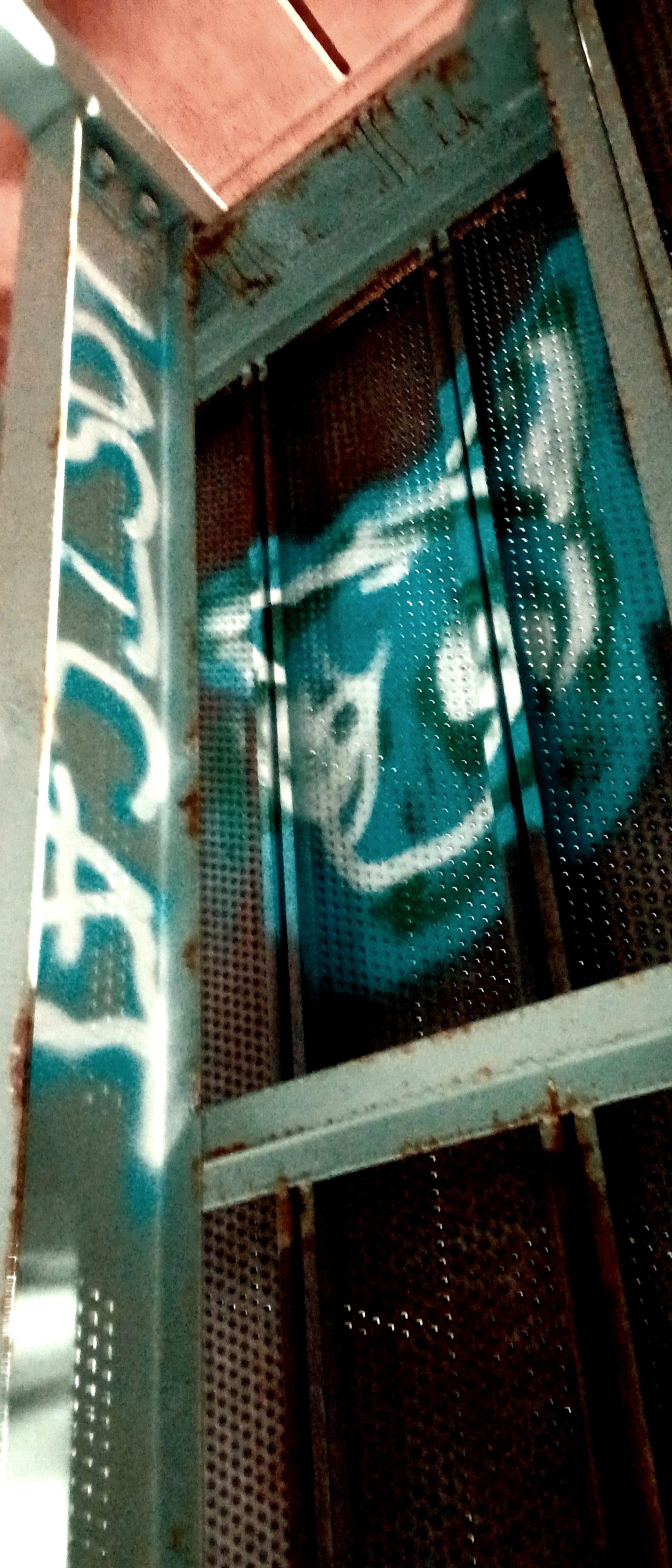Blue cat under step , over head , out of reach , @Reachs' entrance almost able to reach
