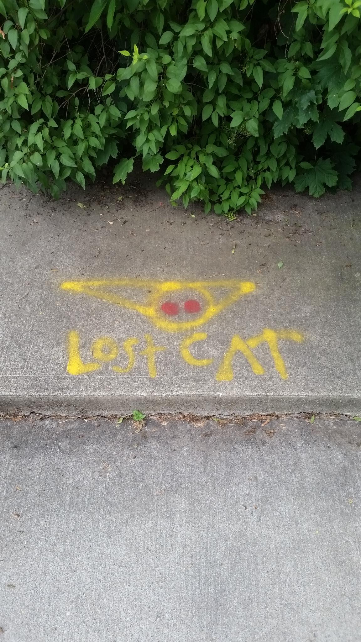 One of the largest cats in the collection graces this raised portion of sidewalk. Replete with crimson eyes, this cat intimidates passersby on State Street.
