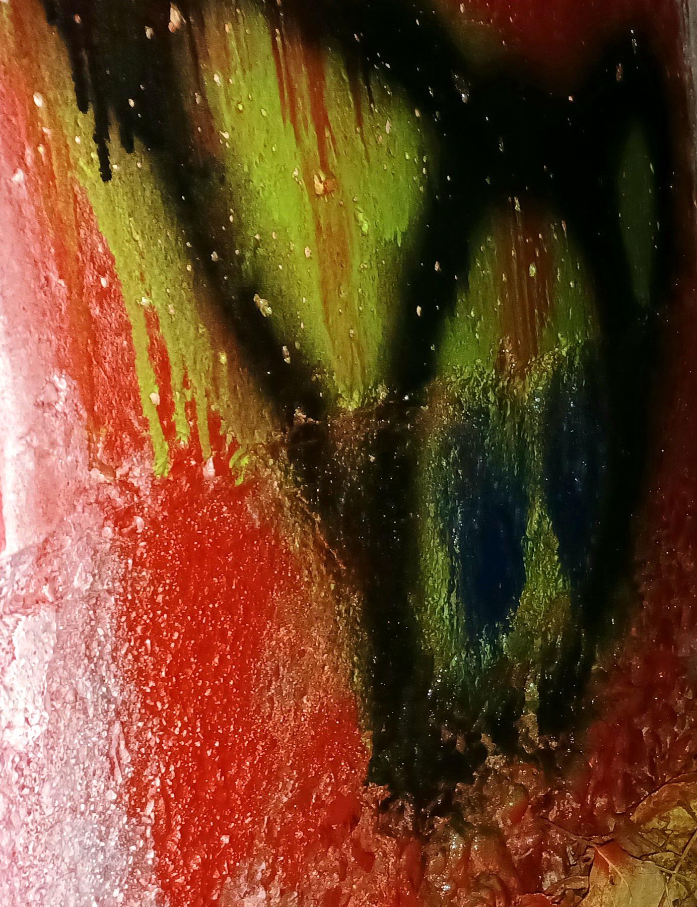On wall next a mural